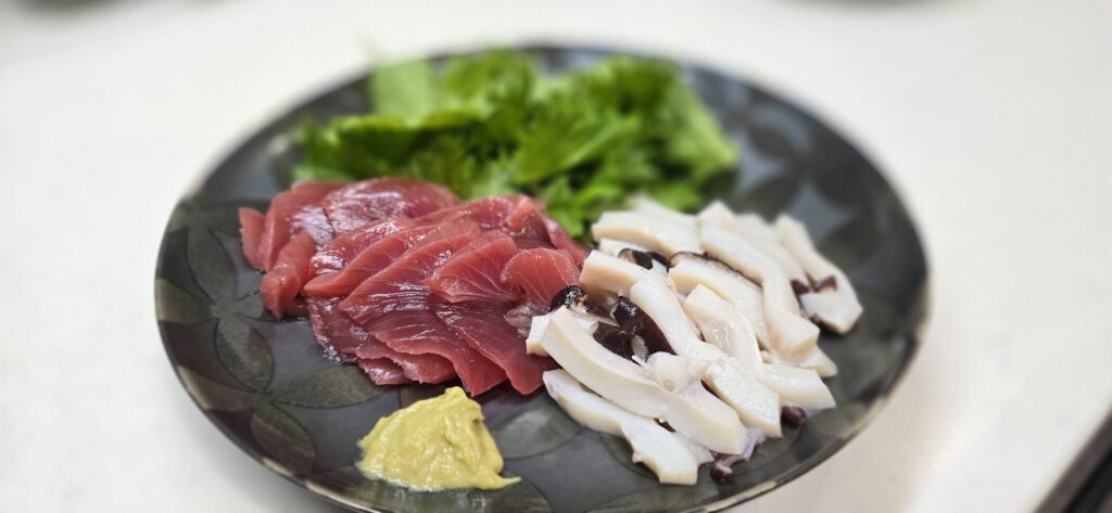 家で食べる時は、刺身一切れに青しそ1+αです!
