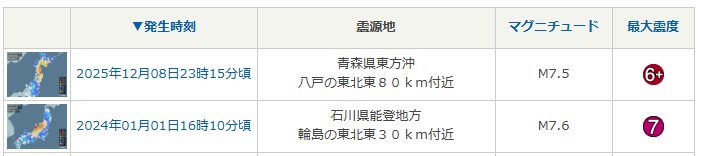 そして2024年1月1日に発生した能登半島の地震はマグニチュード7.6です。