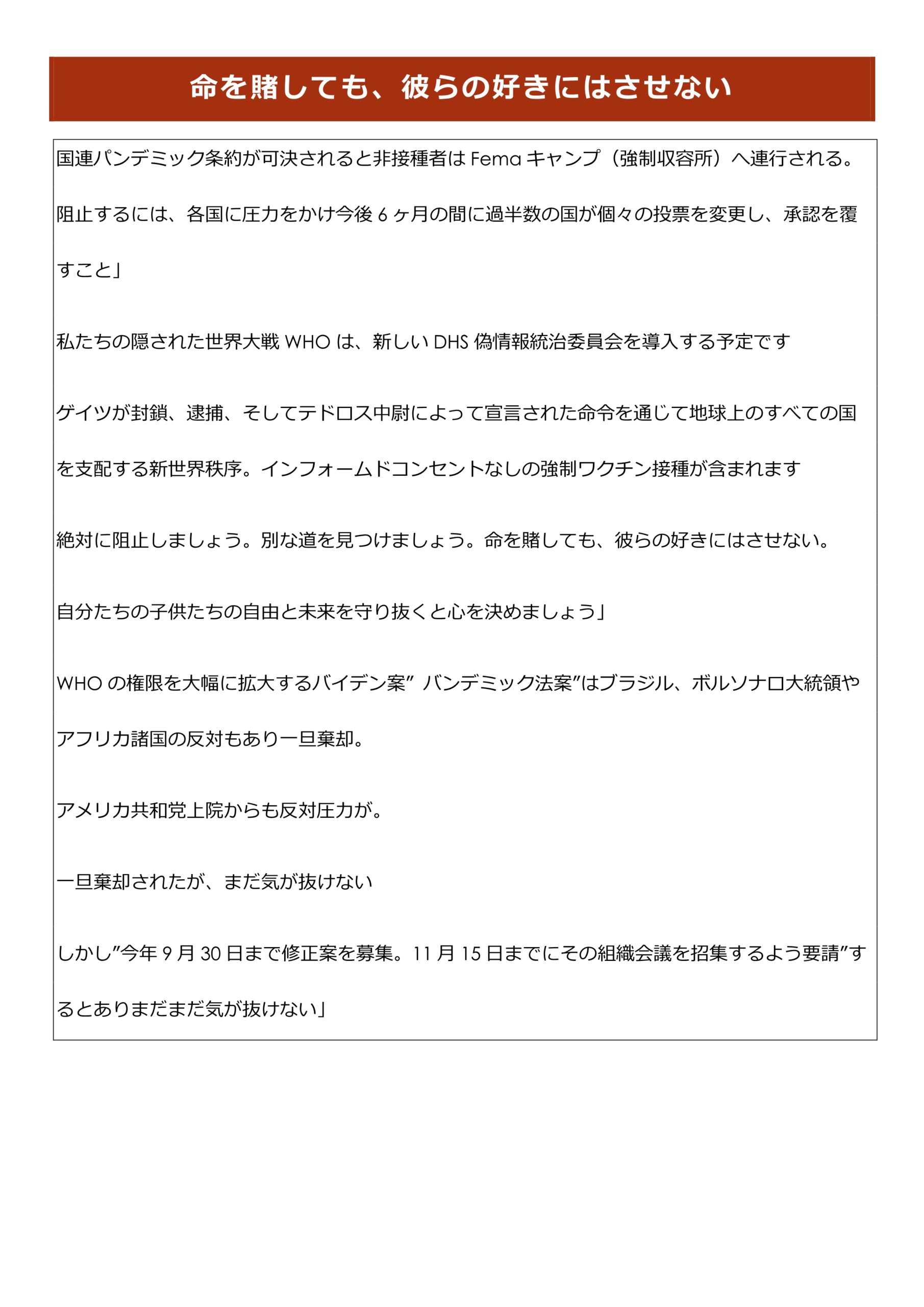 悪魔の最終手引き「パンデミック条約」について取り上げます。