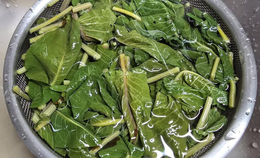 スイバはほとんどアクはありませんが若干シュウ酸(食べた後に歯がギシギシする感じ)を含むので、おひたしの場合は軽くアクを取ります。